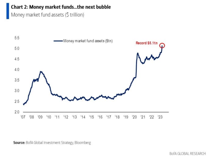 Bank of America analysts led by the Michael Hartnett say money-market funds are the new hot asset.