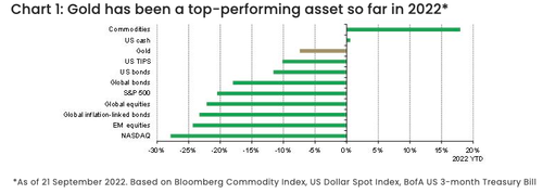 In fact, gold has been one of the better-performing asset classes in 2022.