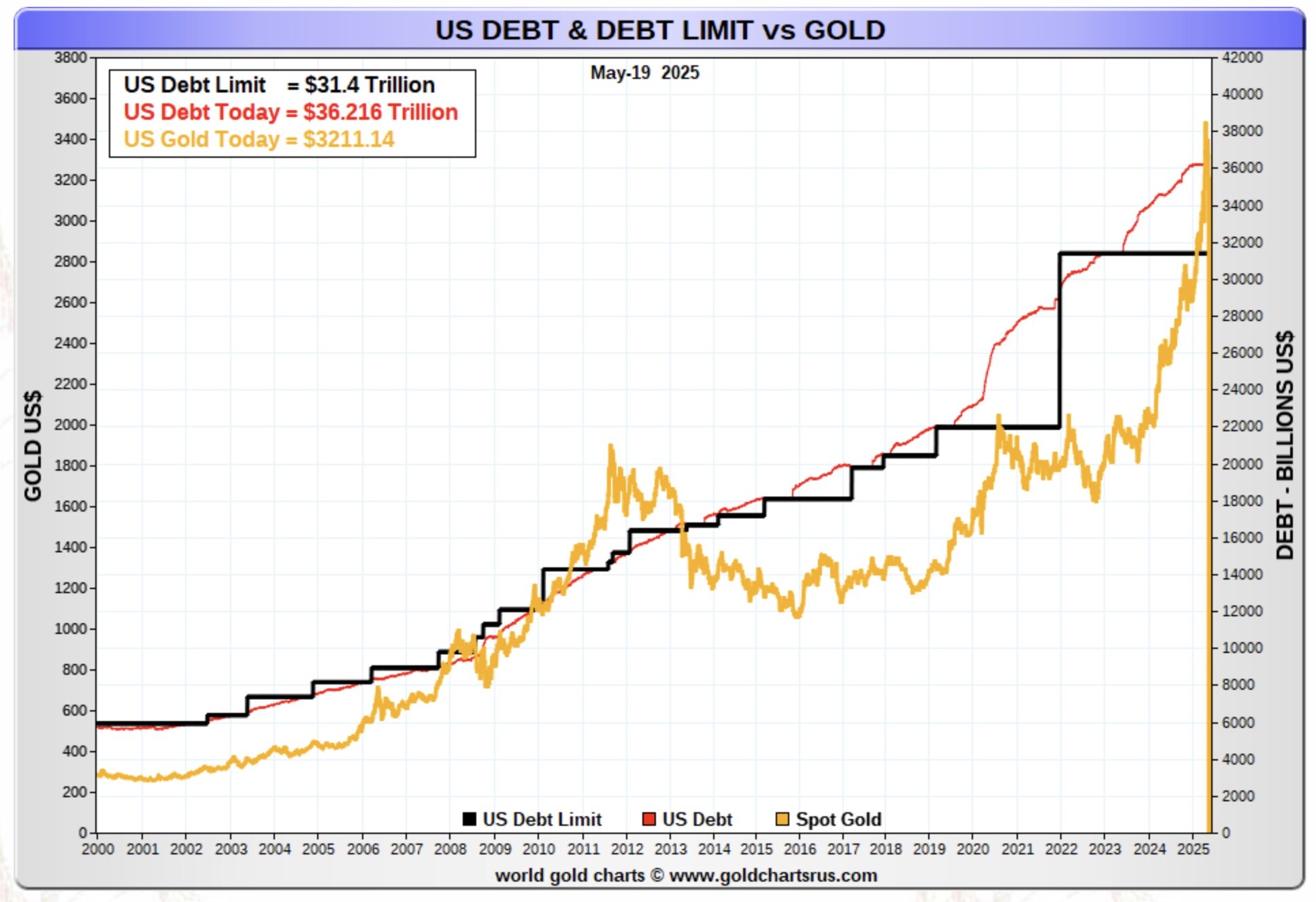 US Debt Levels vs Gold Price