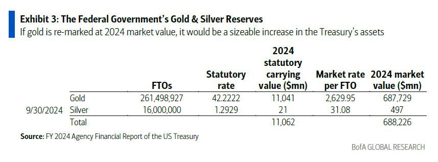 3️⃣ Revaluing Gold – The Most Impactful Option – This is where things get interesting. The U.S. holds 261 million ounces of gold, but it’s still valued at a ridiculous $42 per ounce—a number set in 1973. At today’s market price of $2,800 per ounce, updating the valuation could instantly inject nearly $700 billion into the U.S. Treasury. That’s real money, and it wouldn’t require selling anything—just adjusting an outdated number.